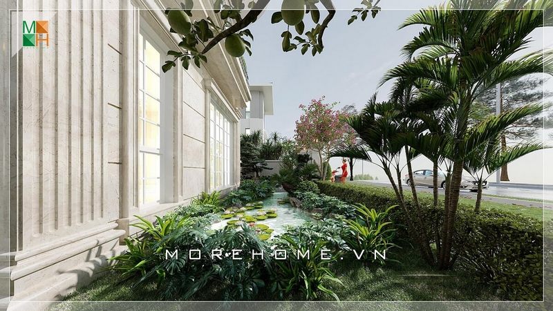 Ngoại cảnh sân vườn của nhà phố, biệt thự bố trí ấn tượng, nghệ thuật đáng để lựa chọn.