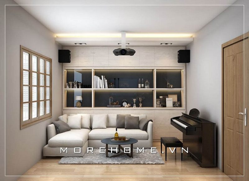 Mẫu kệ sáchđep kết hợp kệ trang trí gỗ công nghiệp được thiết kế âm tường tạo nên không gian rộng rãi đang được nhiều gia chủ yêu thích và sử dụng