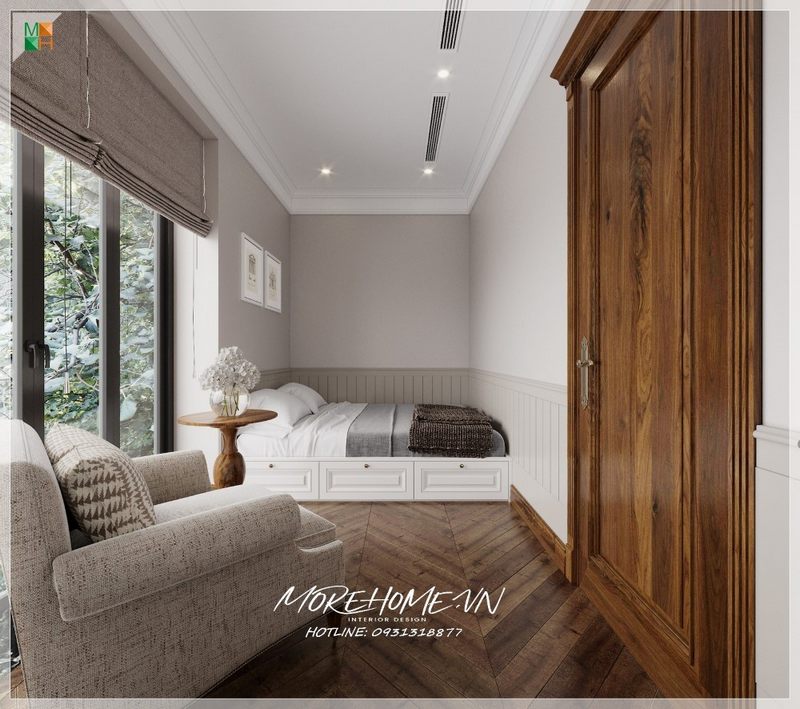 của bạn Mẫu sofa đơn gỗ tự nhiên bọc bởi nỉ tân cổ điển sẽ làm cho phòng ngủ biệt thự của bạn trở nên sang trọng hơn.