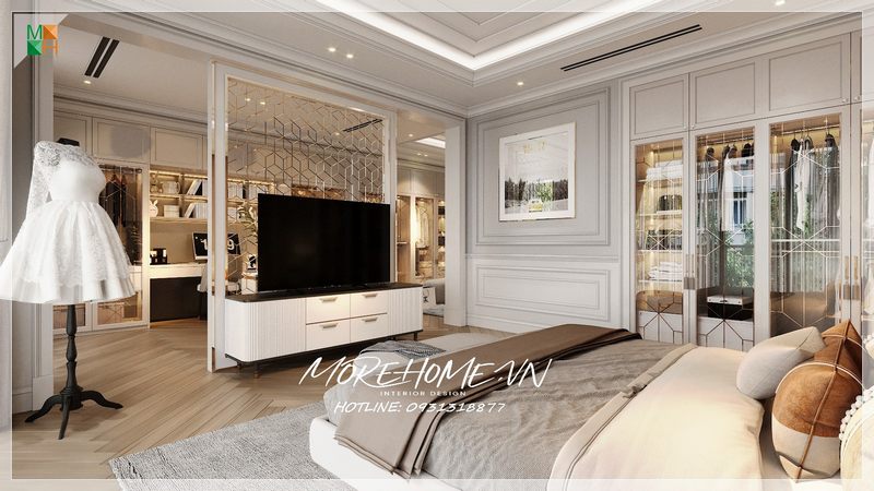 Mẫu thiết kế phòng ngủ biệt thự cao cấp với không gian mở theo phong cách tân cổ điển đẹp mắt và sang trọng.